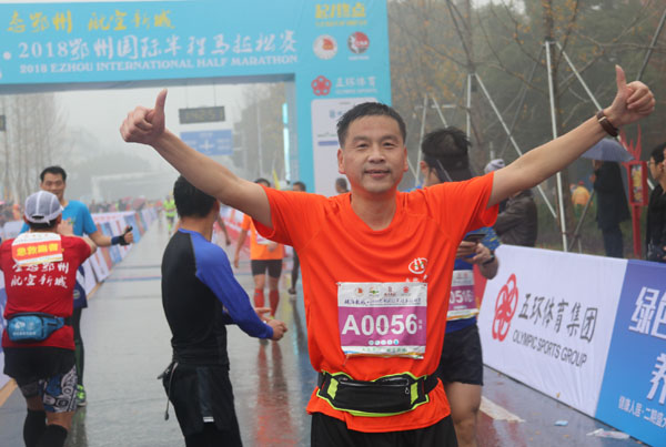 虽然天公不作美,比赛全程被低温和大雨笼罩,但队员们仍旧以饱满的热情全情投入。比赛中,队员们根据自己平时的训练情况掌握跑步速度,在奔跑的过程中相互鼓励,在享受比赛的过程中磨练意志。每一位队员都坚持跑完了比赛全程,没有一个掉队,他们用自己的汗水和拼搏精神,圆满完成了比赛,并取得了完赛奖牌。在半程马拉松项目中,机电学院党总支书记杨勇和陆龙福老师分别跑出了1小时42分和1小时46分的好成绩,成为了本次“奔跑黄职跑团”中的佼佼者。后勤处童金元老师作为跑团年纪最长的队员,此次与同是长跑运动爱好者的儿子一起报名参赛,并以2小时17分的成绩同时完赛,父子俩携手冲过终点线的画面,既温馨又感人。