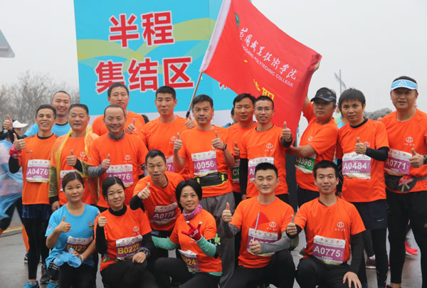 2日8点30分, 2018鄂州国际半程马拉松鸣枪开跑,在比赛现场一万多名参赛选手中,一群身姿矫健的黄职人正式迈开了挑战自我的步伐。他们是由taptap点点机关、机电学院、商学院、交通学院、后勤处、成教学院、智兴公司、附属医院等单位教职工自发组织的“奔跑黄职跑团”队员,跑团的成立获得了校领导及校工会的大力支持。在此次参赛的20多名跑团队员中,年纪最长的队员是60后,最年轻的队员是90后,他们中间有不少人都是第一次参加马拉松比赛。