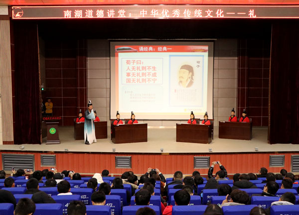 12月12日晚,由交通学院团总支承办的“南湖道德讲堂——礼字篇”在学术报告厅举行。校党委委员、工会主席、宣传部长郑柏松,学工处副处长汤城,交通学院副院长聂进以及各教学学院党总支副书记、团总支书记、辅导员老师和学生代表参加了本次活动。