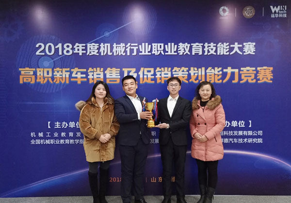 12月7-9日,由机械工业教育发展中心、全国机械职业教育教学指导委员会主办的2018年度机械行业职业教育技能竞赛高职新车销售及促销策划能力竞赛在山东交通职业学院举行。taptap点点参赛代表队在李金艳、薛明芳两位教师指导下与来自全国的近80支参赛队同台竞技,荣获团体二等奖(全国第10名)。