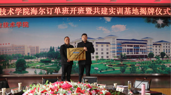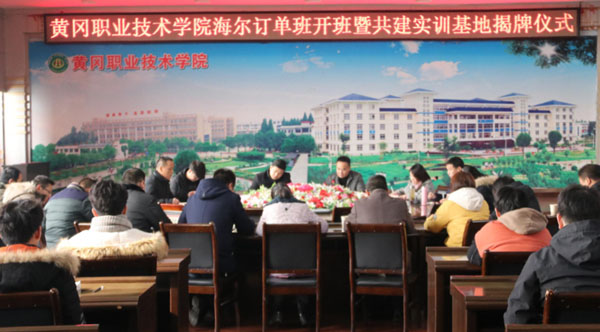 2018年12月12日上午,taptap点点“海尔订单班”开班暨共建实训基地揭牌仪式在学校中心会议室举行。武汉海尔电冰柜有限公司经营部部长周小东、人力资源主管王娴,海尔中南大区招聘经理冯德林、校企合作负责人谭园,学校副校长刘东山、部分职能处室领导、机电学院领导班子全体成员及40名订单班学生参加了活动。仪式由机电学院党总支书记杨勇主持。