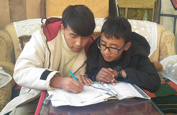 拉巴扎西辅导旦增罗布功课