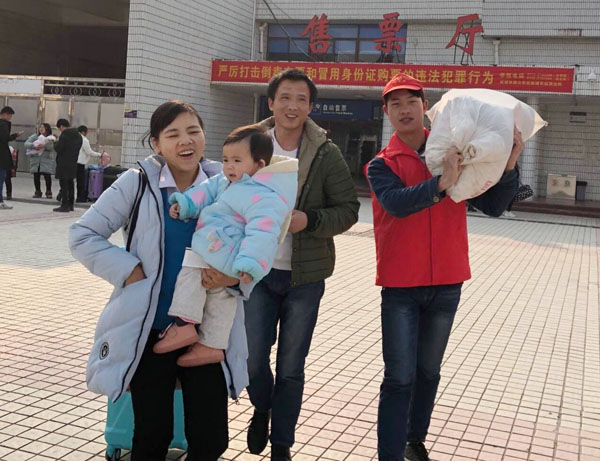2019年春运(腊月十六)开始后,医药学院郭鹏、商学院占时杰、护理学院宋春雪三位老师,主动提出带队和联系车站,并就近招募了20余名学生参与志愿服务。