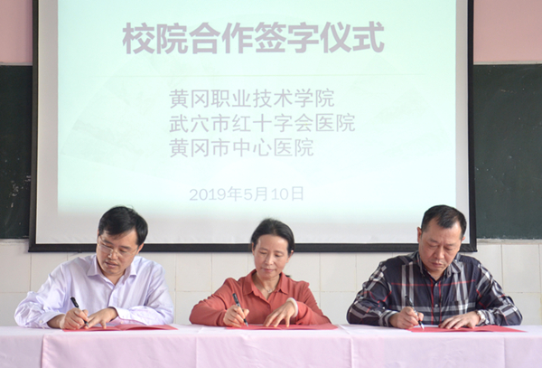 5月10日上午,在护理学院崇贤阁102室举行了学校、武穴市红十字会医院、黄冈市中心医院三方联合开展订单培养协议签字仪式。学校党委委员胡燕,黄冈市中心医院副院长毛伟明,武穴市红十字会医院院长吴天成,护理学院党总支书记王莹华、院长范先超、党总支副书记张朋生、副院长饶凤英等参加了签字仪式。