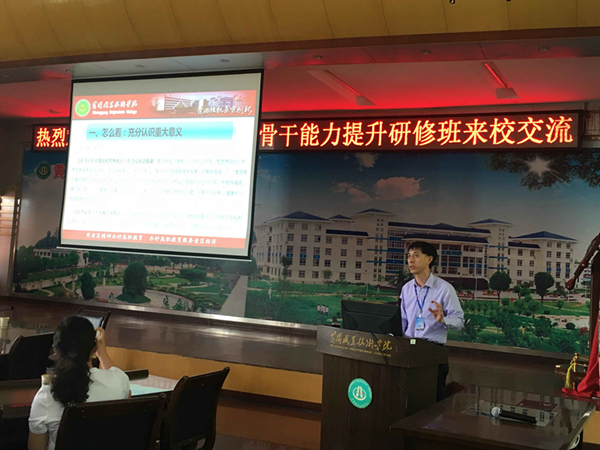 会上,崔现强代表taptap点点学工队伍向全体学员的到来表示热烈欢迎,并介绍了学校概况和学生工作的经验与亮点;郑柏松为学员作了题为《高职院校“一主线四融合”文化育人模式的探索与实践》的辅导报告。