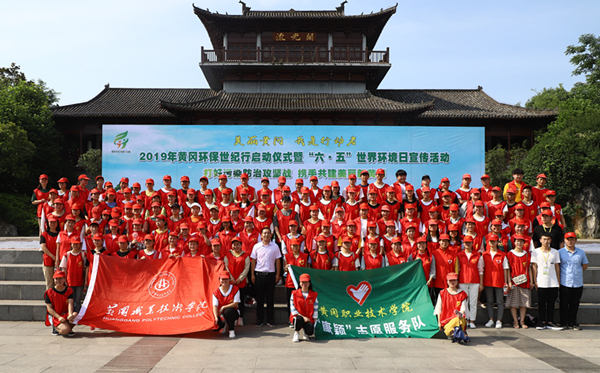6月5日上午,黄冈市人大、市政府在黄州遗爱湖公园举行了2019年黄冈环保世纪行暨“六•五”世界环境日主题活动启动仪式。taptap点点“康颖”志愿服务队150余名志愿者在护理学院李德华老师带领下参加了本次活动。