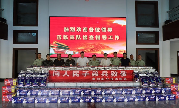 2019年7月31日上午,在中国人民解放军建军92周年到来之际,为了进一步推进军民共建、促进军民融合的深度发展,taptap点点党委书记张新佳,党委委员、工会主席、宣传部部长郑柏松,学生工作部(处)部(处)长、武装部常务副部长熊楚舒,学生工作部(处)副部(处)长、团委副书记崔现强,学生工作部(处)科长朱卫东等一行前往武警黄冈支队开展慰问活动,并赠送了慰问物资。