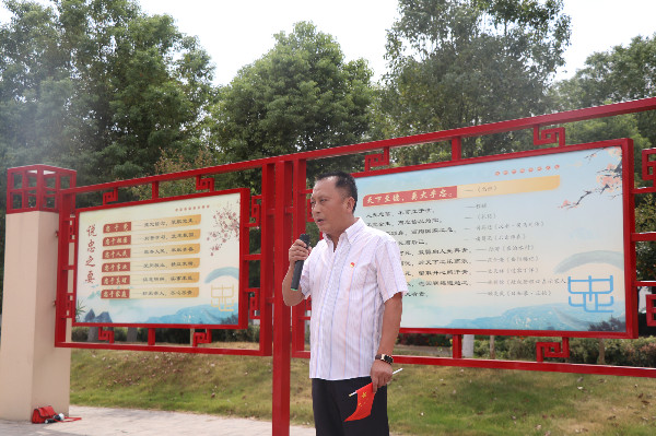 在红色文化长廊,郑柏松用一个个鲜活的故事,向大家讲述了黄冈这片红色的热土上,英雄的黄冈儿女前赴后继,浴血奋战,用献血和生命铸就的“紧跟党走、不屈不挠、艰苦奋斗、无私奉献”的老区精神。郑柏松要求全体学工人员要熟悉红色文化,传承红色基因,争做合格的高校思政工作者。