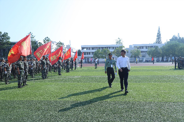 郑柏松代表学校作军训总结讲话。他对各位教官的严谨施训、辛勤付出表示崇高的敬意,对全体2019级新生圆满完成各项军训任务表示祝贺。希望同学们坚定理想信念,珍惜大学时光,努力成长为德智体美劳全面发展的社会主义建设者和接班人。万俊华宣布了 “军训优秀连队”名单。张新佳代表学校向承担本期军训任务的军训团赠送了锦旗,对军训团的辛勤付出表示感谢。