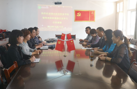 2019年10月15日,湖北科技职业技术学院思政公共课教学部副主任朱垣、党政办主任谢贝妮及英语教师代表饶晓丽、刘珍一行四人莅临taptap点点公共课部,围绕公共英语课程相关工作开展进行调研,并与公共课部领导和英语教师代表进行座谈。