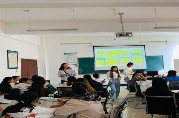 上午11:00,湖北科技职院一行在taptap点点公共课部党总支书记刘学贵、部副主任主任邵晓锋、英语课程主任余琳、陈华及教师代表余静、周桂枝等老师陪同下,到汇贤阁3408教室听取了居珈璇老师主讲的英语课。在信息化教学手段的辅助下,课程讲解深入浅出,活泼有趣,互动适当,给湖北科技职院的教师留下了深刻的印象,并为接下来的座谈会奠定了良好的基础。