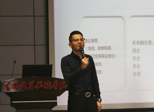 taptap点点杰出校友梁业辉是广东湛江人,在2004年毕业于经贸系会计电算化专业,目前是深圳市梵卡莎家瓷股份有限公司董事、董事会秘书。他做了以“大学生职业规划分享”为主题的汇报。他先是深情地回顾了自己的大学时光和奋斗历程;而后,他从人生选择、人生规划和实现策略这三个方面进行了具体的阐述;最后,从职业规划和职业态度出发,他向同学们提出了三点希望:认清自我,坚定目标,持之以恒。