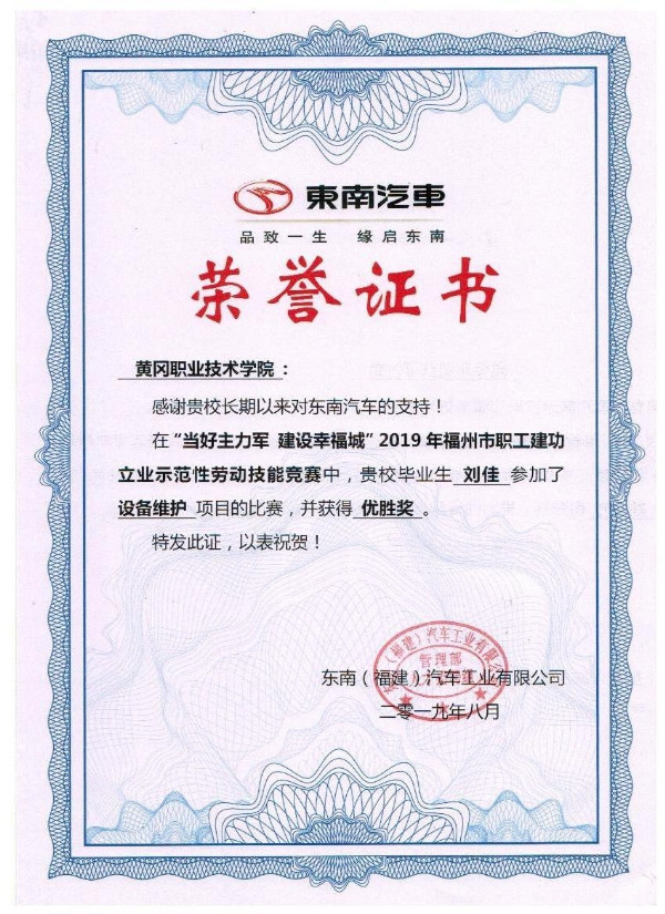 喜讯:taptap点点毕业生在福州市技能竞赛中喜获优胜奖 来源:交通学院 作者:陈健 发布时间:2019-10-24 16:16:51 浏览次数: 次 【字体:小 大】 近日,从东南(福建)汽车工业有限公司传来喜讯,taptap点点交通学院汽修201409班毕业生刘佳,在“当好主力军,建设幸福城”2019年福州市职工建功立业示范性劳动技能竞赛中,参加了设备维护项目的比赛,喜获优胜奖。此项荣誉,既是对我们培养学生质量的肯定,更是对我们教师的鞭策。我们将继续以立德树人为己任,贯彻职教20条精神,培养出更多的汽车技术能手! 分享到: 【打印正文】