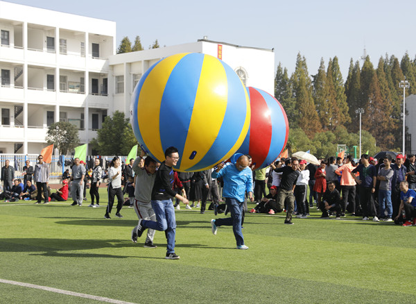 “预备起,一二、一二!” “老师,加油!老师,加油!” 10月30日,中区运动场被热情畅快的呐喊声、欢笑声和口号声层层包围。金秋艳阳高照,草坪茵茵环绕,赛道达标飞跑,处处风景甚好。全校近800名教职工欢聚在一起参加由校工会主办的2019年教职工田径趣味运动会。党委书记张新佳以及其他在校领导踊跃参与到各总支运动团队,与教职工一起共享健康快乐。