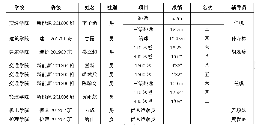 据悉,为迎战本次省大运会,taptap点点公共课部田径队指导老师袁九宗、陈亮宇在辅导员老师大力配合下精心挑选出参赛运动员,狠抓平时的训练量,力求运动员在比赛场上取得优异的成绩。参赛前夕,公共课部领导为所有运动员及教练员作动员,鼓士气;运动会期间,公共课部领导老师赶到运动会现场为运动员们呐喊助威。参赛师生们对取得的成绩倍感自豪,同时也更加自信,下定决心争取在下一届大运会上取得更加骄人的成绩。