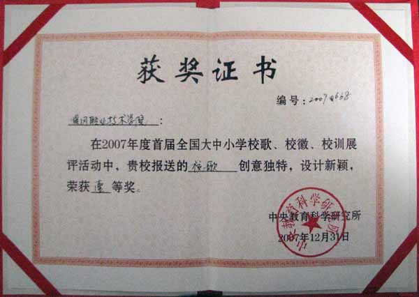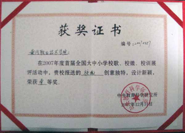 年全国高校校园文化建设优秀成果三等奖之后,1月11日至13日,在中央教育科学研究所举办的首届校歌、校徽、校训展评颁奖大会上,taptap点点摘取两项桂冠——校歌、校徽分获一等奖。另外,taptap点点还荣获优秀组织奖。