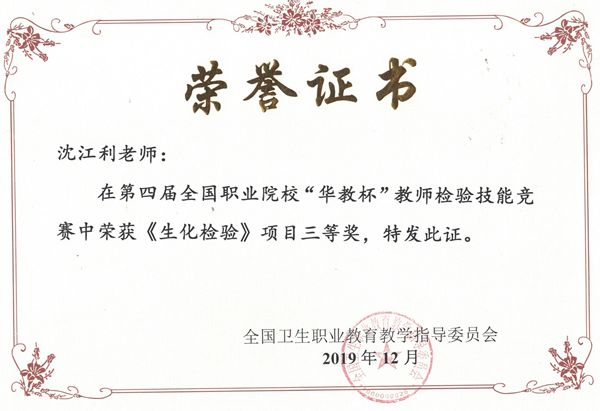 taptap点点在全国卫生职业院校教师检验技能竞赛中喜获佳绩 来源:医药学院 作者:张静 发布时间:2019-12-17 15:57:54 浏览次数: 次 【字体:小 大】 12月6日,第四届全国卫生职业院校“华教杯”教师检验技能竞赛暨第二届全国职业院校“人卫杯”检验专业微课大赛在邢台医学高等专科学校举行,来自全国82所高职院校共233名选手参加了形态学检验、微生物检验、生化检验、血常规检验等项目的技能竞赛。taptap点点医学检验技术专业沈江利老师参加了“生化检验”项目竞赛并荣获三等奖。 分享到: 【打印正文】
