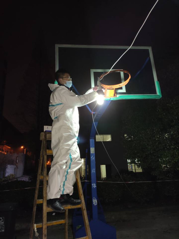 “小屈,你快到D栋帮忙把电恢复一下,刚打电话说里面电出故障了。”“小屈,赶紧过来一趟,隔离区电线路需要改造,带上工具速到!”“小屈,快骑上电动车,去三清社区把消毒物资领过来。”“小屈……”是的,“小屈”是疫情防控应急值班办公室使用频率最高的一个称呼。自1月20日接到任务以来,小屈是日夜值守,任劳任怨,经常工作到深夜一两点才能休息,遇到紧急情况也是随叫随到,从不拖延,从那时到现在,他一天都没休息。大家都说:“小屈是个宝,一定不能少。”水电准备到位后,他又主动担起了消毒的工作,配好消毒药水,背起水箱,一个人从东区喷洒到西区,一趟下来,满头大汗。