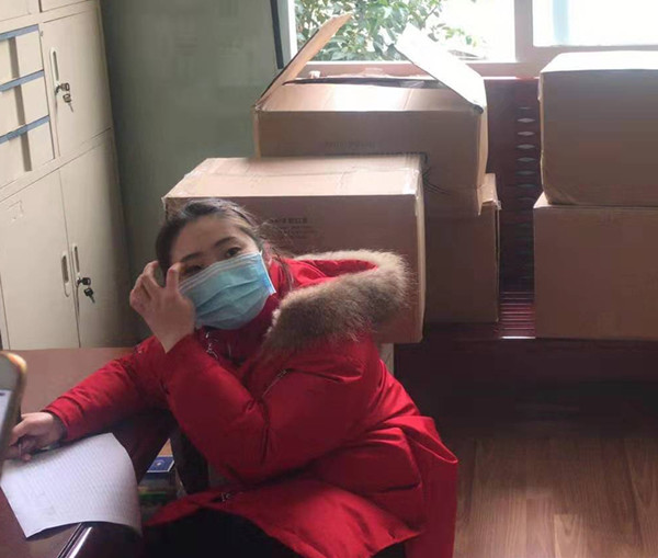 李帆在登记捐赠物资