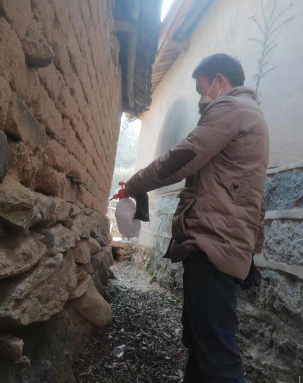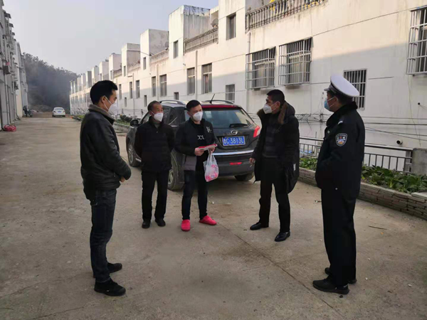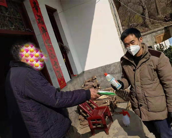 初四,他得知当地有武汉华南海鲜批发市场的返乡人员,主动上门做劝导工作,并发放消毒液和口罩。