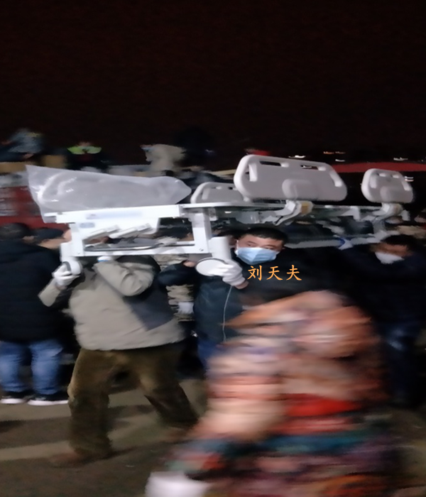 刘天夫在搬运医疗设备