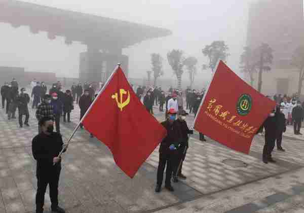2月9日8点30分,学校南湖广场,223名教职工正在接受战斗任务。