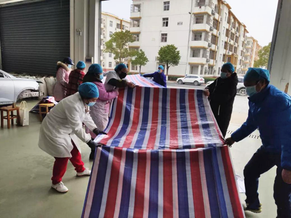 物资紧缺!老师们就自带口罩、手套、帽子等防护用品,宿管员就在家炒好咸菜和花生米带到学校给大家添个菜。时间紧迫!大家就席地而坐,快速嚼几口盒饭后迅速投入战斗。任务繁重!大家就相互鼓励、协调配合,累了咬咬牙,坚持、坚持、再坚持。由于防疫需要,大家戴着口罩干活,一会儿口罩湿透了,眼镜起雾了,头套出水了,很多同志累得气喘吁吁、走路腿发软,但没有一人喊苦喊累、退出战斗,因为大家都明白:疫情就是命令,时间就是生命,必须争分夺秒、高标准地完成战斗任务。