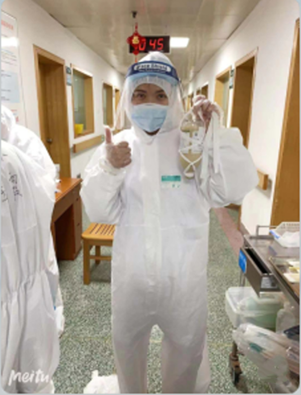 身为一名共产党员,奔赴一线是我义不容辞的责任,国家有难,挺身而出!在跟护士长请愿后得知此次人事由护理部调配,她还安慰我道,无论前后方,都得要人坚守。最终我留在了原来的岗位。每天上班,防护用品又不够,在可预知的交叉感染下,只能小心又小心,为了避免其他人员感染,一律禁止陪护,所有患者全权由两名护士完成所有的护理,白班夜班连着上,好在家人朋友每天嘘寒问暖,虽然疲惫却感到温暖。见证了太多的生老病死,本以为在疾病面前能泰然处之,但每当听说护理过的患者检查出新冠肺炎,看着一线同事发来的工作情况:患者不断增多,环境堪忧,物资短缺,我其实很心疼、害怕。但是所有人都在坚持,也在互相打气。继小汤山医院后,为了更多的病人得到救治,在众多领导、同事、社会志愿者的辛苦打扫、整理下,最终于一月二十八号夜间十点,在心内科从我手上交接,转运了第一名新型肺炎患者至大别山新院区,那里床位得到了扩充,医疗环境得到了改善。虽没能去一线体会最直观的疫情之苦,但心系无辜百姓,同事们的心情却是一样的。以前总觉得夜班辛苦难熬,自疫情爆发后,大部分同事奔赴一线,天天上夜班的我逐渐明白,守好眼前的病人也是同样重要,跟一线同事的精神压力、工作处境相比,我已经算很好了。前几天下夜班后,看到发热门诊排了很长的队,确诊或疑似人员还很多,防护用品依然短缺,医护人员人手不足,但国家没有放弃人民,医护人员没有放弃患者,社会人士没有放弃爱心,同行没有放弃支援,百姓不给国家添乱,相信我们终将取得胜利!”
