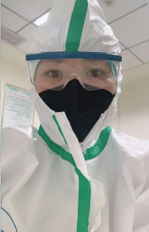 “自从新型冠状病毒肺炎疫情发生以来,作为武汉市汉阳医院临床一线的医护人员,我毅然决定延迟婚期,取消婚假,加入和坚守在抗击新冠肺炎的一线中。此时此刻,我只有一个目标:舍小家,顾大家,同担当,共守护。因交通管制,我每天骑四十分钟自行车去医院上班,不幸在大风和小雨中吹感冒了,在家人的反对下仍坚持带病上岗、驻守医院。在高强度的工作负荷基础上,我首先要克服自己的恐惧情绪,承受高压工作状态,做好各种治疗、护理,脚步匆匆,面对急、难、险、重、高风险的特殊工作,我们互相鼓励,无怨无悔地践行着那份医者担当,因为我身着白衣,因为我是一名中国共产党员!”
