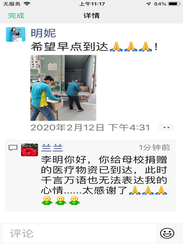 一朝黄职人,一世母校情。梦回巴河畔,心系黄州城。无论莘莘学子身处何方,母校始终是校友们心中的一方故土,始终寄托着他们不变的情怀。2020年,新型冠状病毒肺炎来势凶猛,黄冈成为了次于武汉的重灾区之一,曾求学于黄冈职院的校友们第一时间用实际行动支援黄冈和母校的抗疫行动。2月16日,山东优秀校友李明为taptap点点附属医院(惠民医院)捐赠的价值20万元医用物资送到了惠民医院疫情防控指挥部。
