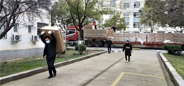 电视机配送到校后,老师们主动前往卸货又一台台扛着送往宿舍安装