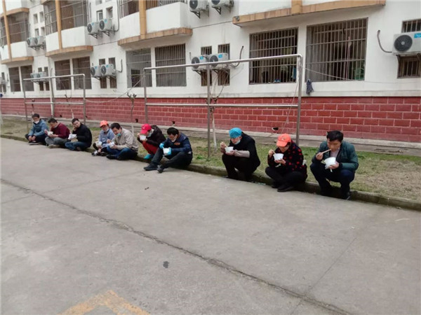 2月5日8:20,万俊华、高厚荣、亓志学、崔现强、童辉、龚勤、余志超(余强父亲)、余强在保卫处门口集合,召开碰头会。万俊华根据市指挥部的要求作了详细的工作部署。后勤餐饮中心主任吴全宏接到通知后,立即收拾行囊启程,把在浠水竹瓦、散花等乡镇的三名厨师经过十几道关卡接到学校,边接人边临时采购简单的蔬菜,确保在校人员的伙食供应到位。截止到2月5日下午所有准备工作到位:130间房屋打扫、消毒到位;床上用品清洗更换到位;每间房屋15件生活必需品分装、分发到位;消防设施检查到位,警械区域划定到位,警戒线拉到位;安保组(黄州区法院法警)、医护组人员协调到位,他们的住宿场所安排到位,生活必需品分发到位。