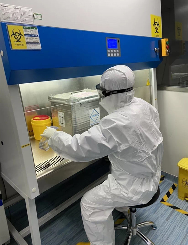 在一线战“疫”的日子让黄涛感受颇深,他也分享了自己的抗疫心得:疫情就是命令,2月4号接到单位发出的支援武汉号召,我毅然决定报名,暂别父母后立刻从家返回武汉,在返汉途中由于道路被封,只能由公司工作人员接回,四小时后就回到了工作岗位上,大家都在战斗,只有回到战场,我才算安心。在科室,为了节约本就不多的口罩和防护服,我们只有选择少喝水,避免常上厕所。只要防护服没有明显的破损,大家都是一套装备撑一天。我们的动作再麻利一点,才能再多检测一个病人,被确诊的患者才能早一点接受治疗。防护服穿脱一次需要近半小时,为了将时间全部用在病人身上,我们8个小时不吃不喝,护目镜泛满水珠,手汗湿到皮肤发皱。由于我们的标本主要来自武汉各大医院的确诊患者,标本的前处理是整个检验过程中最危险的工序之一,我们被感染的风险更加严峻,开箱环节必须在生物安全柜里进行,混在液体当中的就是从患者鼻咽部采集到的上皮细胞,里面可能含有新冠病毒,从样本罐中取出时,容易产生气溶胶污染,气溶胶是比飞沫更微小的粒子,借助空气传播,也是这次疫情需要高度重视的传播方式。在整个标本前处理过程中,我们都处于污染的环境中,即便如此我们依然迎难而上,不惧风险,夜以继日地坚守在科室,全力检测受感染的病患,加班加点、不分昼夜,与时间赛跑,与病毒搏击。这份勇气,来自于日常积累而成的过硬的专业素质,更来自于医者仁心的职业信念,扶危渡厄,本乃医者担当。2月10日,我毅然向党组织递交了入党申请书。很快,公司总部下发通知征集援鄂人员,我义无反顾地报了名,也想过有危险,但我是一名医护人员,这时候应该要冲在前面。2月17日,我带上一整箱衣物就直接从武汉奔赴荆门,在钟祥市人民医院支援核酸检测工作,我会一直奋战到疫情结束的那一天。中国加油!湖北加油!