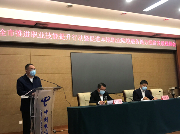 周勇士作了讲话,他介绍了黄冈在当前疫情下的稳就业促就业总体情况,充分肯定和赞扬了发言单位的典型经验。他要求与会各单位要深入推进职业技能提升行动,增强就业人员的技能,稳就业稳民生,促就业促发展;要扎实开展本地职业院校服务地方经济发展的各项工作,鼓励更多学生留在黄冈本地,就业黄冈,服务黄冈;要加强领导,确保“两个三年”行动计划落地见效,促进黄冈经济高质量发展。