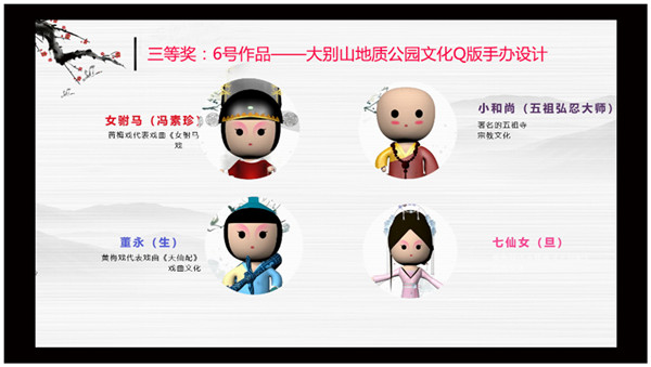 以黄冈市文化和旅游局、黄冈市自然资源和规划局为指导单位,黄冈市大别山旅游开发有限公司为主办单位的首届黄冈大别山世界地质公园文化产品创意设计大赛总决赛于6月9日在黄冈市大别山世界地质公园博物馆3楼报告厅举行,入围前16强的选手们围绕产品介绍、主题表现、创意水平、产品工艺和商业价值五个方面进行了陈述与答辩,最后taptap点点动漫制作技术专业胡圆圆团队设计制作的《大别山地质公园文化Q版手办设计》荣获三等奖,数字媒体艺术设计专业乔春飞团队设计制作的《黄梅戏纸模》获优秀奖,分获奖金3000元和1000元。
