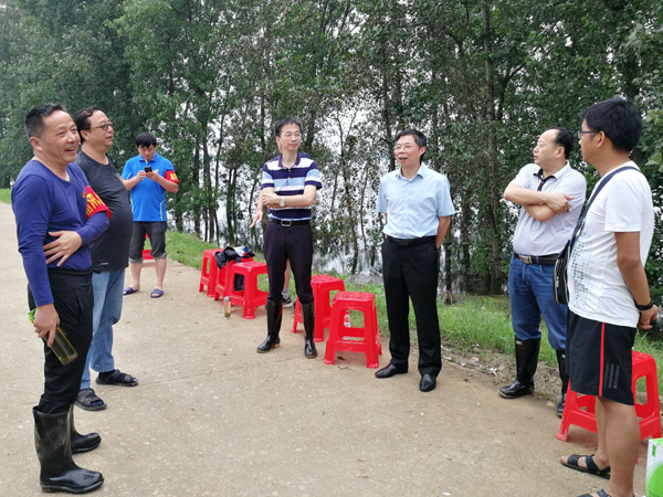 7月16日,党委委员、副校长熊发涯代表学校党委到防汛一线看望防汛突击队员并检查指导工作。熊发涯指出,汛情就是命令,江堤就是战场,全体突击队员要服从当地政府的统一部署,切实加强汛期值守,认真做好水情检测,加强险情巡查,为村镇提供精准的汛情信息,确保安全度汛。各位党员同志要以实际行动在防汛一线践行初心使命,让党的旗帜在长江岸边高高飘扬。