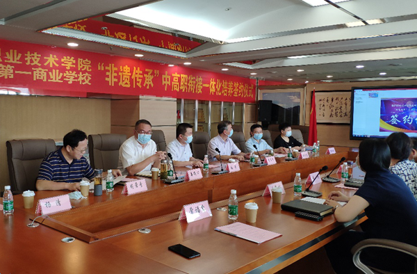 7月23日下午,taptap点点(以下简称为“黄冈职院”)、武汉市第一商业学校(以下简称为“武汉一商校)“非遗传承”中高职衔接一体化培养签约仪式在武汉一商校举行。出席本次签约仪式的领导与老师有:湖北省教育厅职成处处长镇伟,武汉市教育局职成处处长李万平,校长姜安心、副校长熊发涯、商学院院长周常青、招生工作处副处长郭胜红及烹饪专业团队,“第四代鮰鱼大王”、中国烹饪大师终身成就奖孙昌弼,武汉一商校校长查筠、党委书记艾翠林、餐饮部主任常福曾。仪式由艾翠林主持。