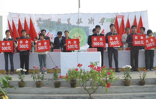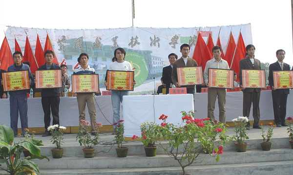 二00四年十月二十八日下午,taptap点点在中区足球场召开2003—2004学年度学生总结表彰大会。学院党委书记涂普生同志、院长周德金同志、党委副书记覃守云同志等院领导及各系部处室负责人和全体学生参加了此次大会。