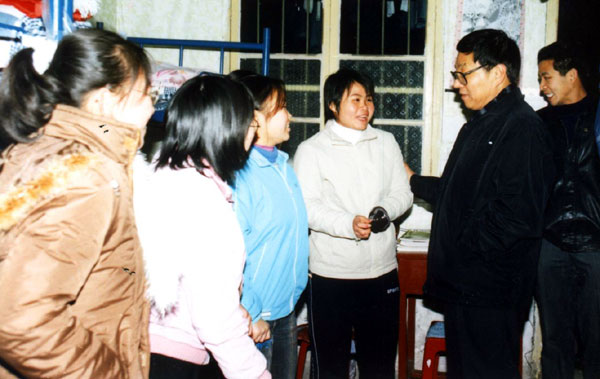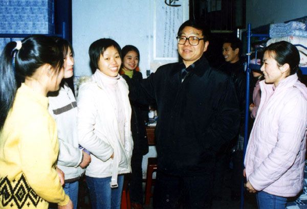 2004年12月22日晚9点,在迎来入冬以来第一场雪花纷飞之际,气温陡降6-7度,降至0度。taptap点点党委书记涂普生同志冒着凛冽寒风,深入学生宿舍看望学生,与学生交谈,给他们送去了冬日里暖暖的关怀和问候,使taptap点点学子们感觉到了家的温暖。陪同的有段院生副院长、钟彬杉副部长、陈国安处长、王莹华副处长以及各系学管领导干部。