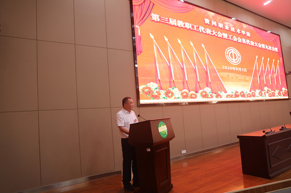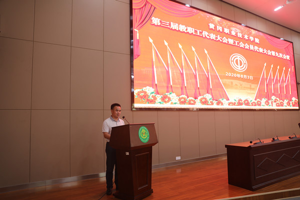 上午8:30,大会在雄壮庄严的国歌声中拉开帷幕,副校长熊发涯主持会议。会议听取、审议了校长姜安心题为《坚持创新发展,弘扬黄职精神,为战胜一切困难夺取“双高计划”建设的新胜利而努力奋斗》的行政工作报告;工会主席郑柏松作了题为《聚焦初心担使命,凝心聚力谋发展,为学校“双高计划”建设汇聚磅礴力量》的工会工作报告;副校长刘东山作了《2019年预算执行情况与2020年预算草案的报告》;工作人员通报了各代表团在会前对几份工作报告及学校其他方面的主要意见及建议,这些建议充分体现了广大代表心系学校改革发展,积极参与民主治校,为学校战胜一切困难、努力夺取“双高计划”建设的新胜利而共同奋斗的高度共识。