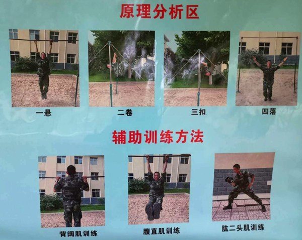 郭自立是一名大学生入伍义务兵,在部队期间,自觉加强政治理论学习,苦练本领,快速适应了部队的生活,充分发挥自己的技能特长优势,训练成绩特别突出,在两年的军事体育运动会暨“五大技术”比武竞赛中荣获嘉奖3项,他在单杠上的训练动作和辅助训练方法作为规范动作和有效方法以展板形式呈现,在部队进行展示,让全体官兵学习。