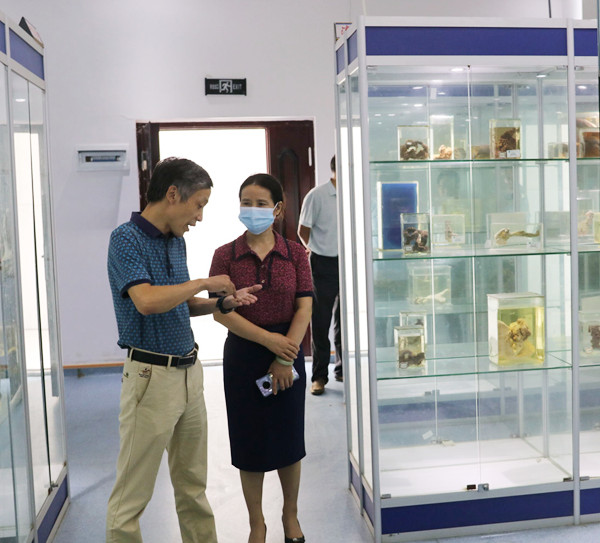 上午,在郑柏松、胡燕的陪同下,英山县人民医院院长赵茂林、团风县人民医院副院长郑勤一行15人参观了生命科学馆、临床实训室、校史馆、思想政治理论课实践教学中心等场所。