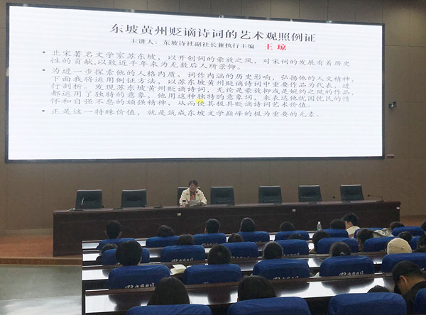 王琼主讲题为《苏东坡黄州贬谪诗词的艺术观照》的讲座
