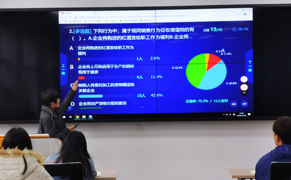 活动上,商学院蔡小平副教授向各位前来参加活动的领导和老师主讲了一节精彩的示范课。蔡小平教态亲切,教学功底扎实,将培养学生法律意识和道德观念融入具体的教学活动中,有助于让学生形成良好的职业素养。课后,她还向大家分享了在教学中开展课程思政的实践经验。