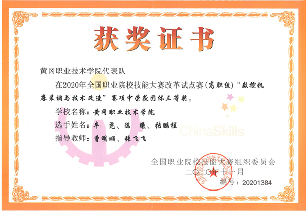 taptap点点代表队在2020年全国职业院校技能大赛试点赛(高职组)上获团体三等奖 来源:机电学院 作者:曹明顺 发布时间:2020-12-01 21:14:05 浏览次数: 次 【字体:小 大】 11月29日,2020年全国职业院校技能大赛改革试点赛(高职组)“数控机床装调与技术改造”赛项在济南工程职业技术学院落下帷幕。taptap点点机电学院数控201801班牟尧、陈曦、张鹏程组队代表湖北省参加了此赛项,获得了团体三等奖。 分享到: 【打印正文】