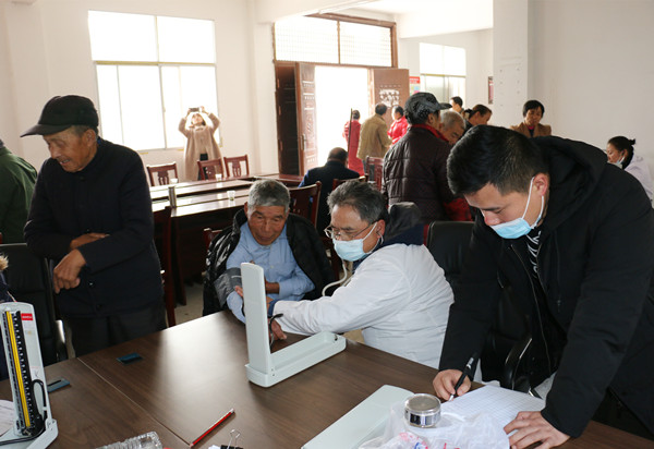 学校的教职工志愿者为到场的村民免费体检,并就当地村民多发的慢性疾病开展健康知识宣讲,发放健康科普手册及板蓝根等常用药品。当地村民的对学校开展的活动称赞不已。