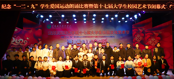 12月9日晚,学校纪念“一二·九”学生爱国运动诗歌朗诵比赛暨第十七届大学生校园文化艺术节闭幕式在大学生活动中心举行。学校党委委员、工会主席、宣传部部长郑柏松,学生工作部(处)部(处)长熊楚舒,团委书记崔现强,学生工作部(处)副部(处)长汤城,医药学院党总支书记陶志勇,各教学学院党总支副书记、团总支书记、辅导员及部分师生共同观看了比赛。心理健康教育中心杨晓燕,学校办公室任静,学生工作部(处)杨晨程,团委冯爱利、肇芬担任评委。本次活动由医药学院团总支承办。