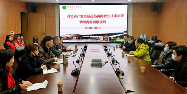 为深入了解学校青春健康俱乐部等项目的筹备情况,12月9日,湖北省计划生育协会(以下简称为“湖北省计生协”)专职副会长张友芳、组织宣传和群众工作部部长梅红、办公室一级主任科员王自伟,黄冈市计划生育协会(以下简称为“黄冈市计生协”)专职副会长熊林、办公室负责人周琴一行五人,到学校调研青春健康俱乐部建设情况。学校校长姜安心,党委委员、工会主席、宣传部部长郑柏松,党委委员胡燕和学校青春健康俱乐部项目全体成员参加了座谈调研。