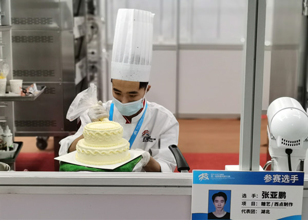 12月10日至13日,中华人民共和国第一届职业技能大赛(以下简称为“第一届全国技能大赛”)在广州琶洲国际会展中心举行。学校商学院烹饪202001班张亚鹏同学代表湖北省参加第一届全国技能大赛中世界技能大赛(以下简称为“世赛”)选拔赛糖艺西点项目,同来自全国31个省、市、自治区以及中国轻工联的32名选手同台竞技,获第一届全国职业技能大赛优胜奖牌,并成功进入世赛中国集训队。