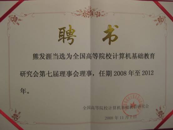 11月8日-11日,在广西桂林召开的“全国高等院校计算机基础教育研究会2008年学术年会暨研究会成立25周年纪念大会”上,taptap点点熊发涯教授当选为全国高等院校计算机基础教育研究会理事。